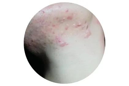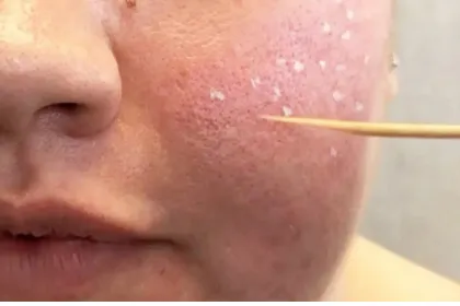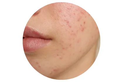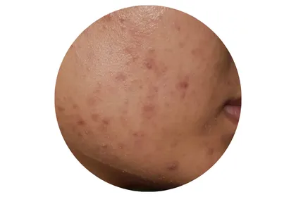 Roseata persistenta în zonele unde au fost leziuni de acnee active. NU este cicatrice structurala, ci inflamatie reziduala si vascularizatie crescuta.